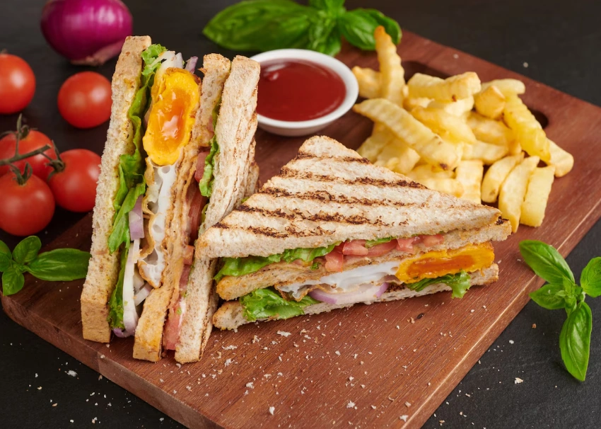 Freshly made grilled chicken sandwich with rich flavors, served at our coffee house