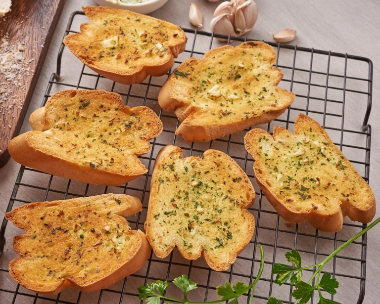Freshly baked classic garlic bread, a savory side to enjoy at our coffee house.